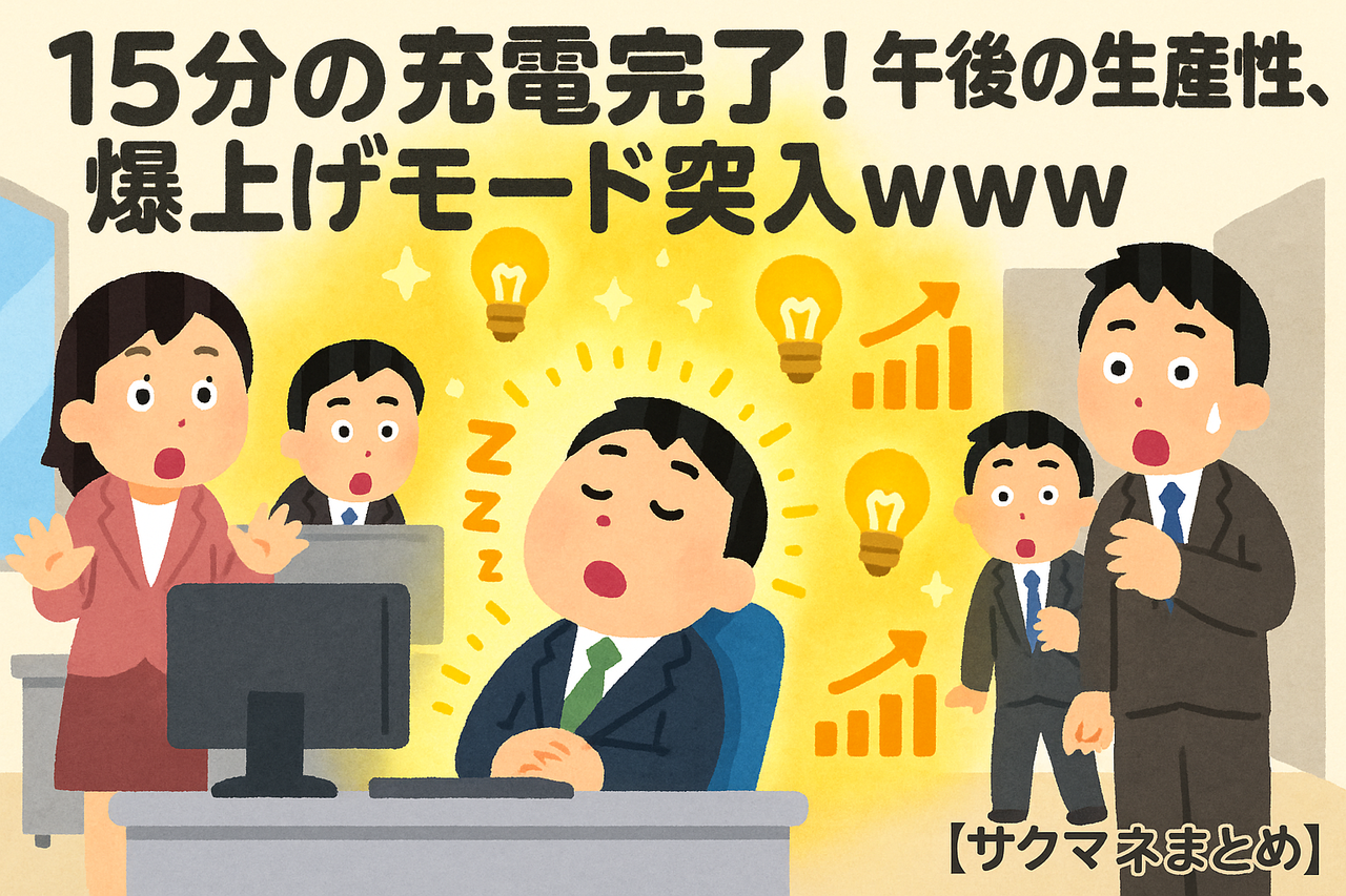 昼下がりの猛烈な睡魔、マジで人類の敵だよな!ワイも昔、昼休憩に車で仮眠してたらガチ寝しちまって、気づいたら3時間経ってたことがあるんだよ…😱 午後イチの会議に間に合わず、上司に土下座したのも良い思い出だぜwww(土下座ラッコ良くない?) でもな、最近じゃその「昼寝」が、ただのサボりじゃなくて最強の仕事術だって言われてるんだぜ!