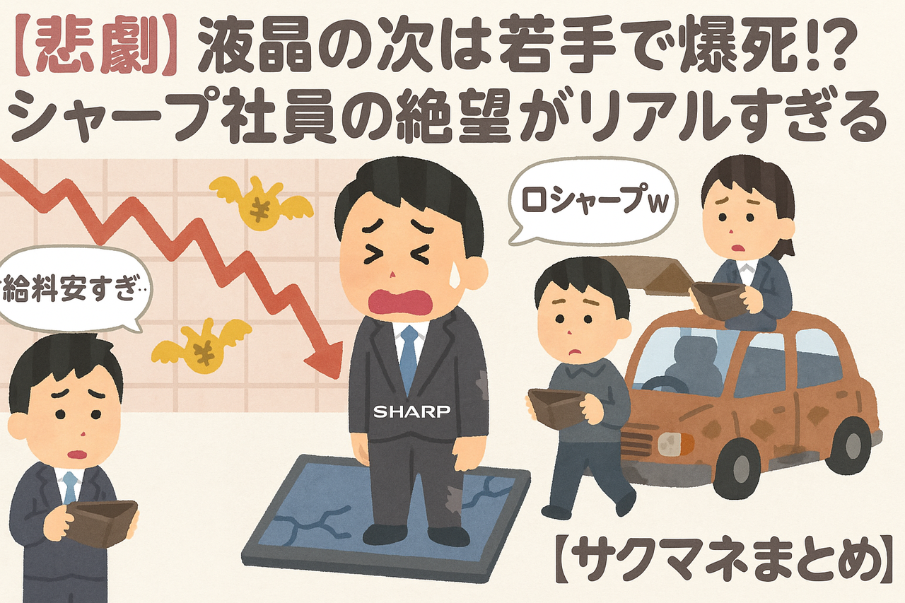 👉 かつて「目の付けどころがシャープでしょ」で一世を風靡した巨大企業が、なぜ今「投資失敗の常連」と呼ばれるようになったのか。スレに渦巻く現役社員たちの悲痛な叫び、経営への怒り、そして想像以上にリアルな貧困生活…これは他人事じゃねえ、日本の大企業が抱える病巣そのものだ!