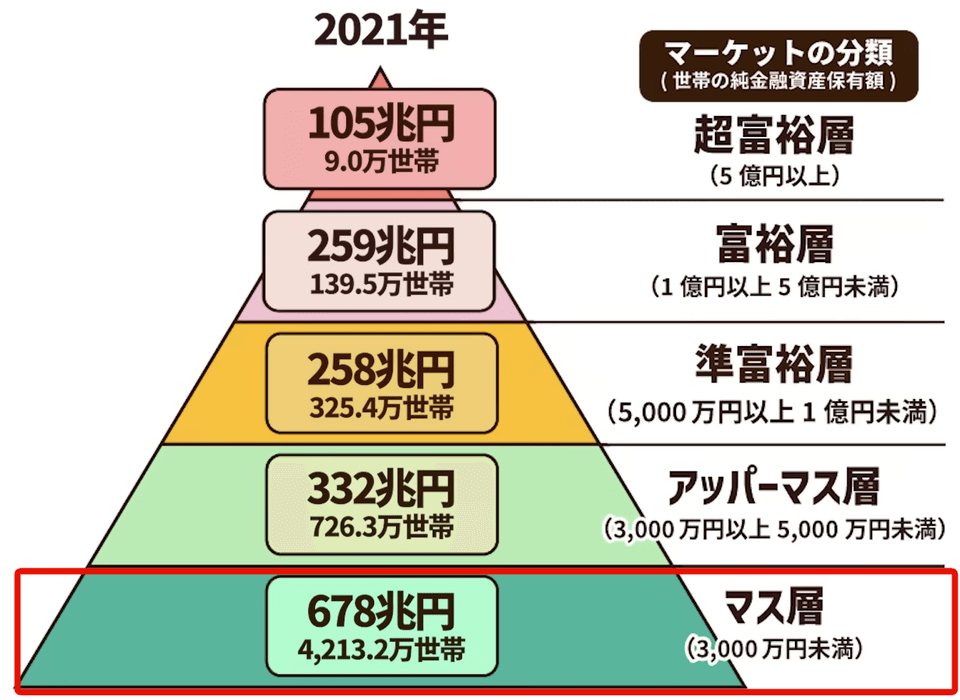 ・マス層(3000万円未満):「4213万2000世帯」合計:678兆円