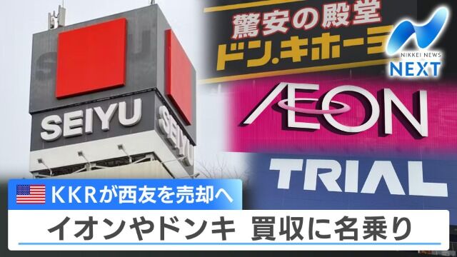 米投資ファンドのKKRが傘下の総合スーパー(GMS)、西友の売却を検討していることが7日、わかった。株式売却に向けた入札手続きを始め、イオンやパン・パシフィック・インターナショナルホールディングス(PPIH)など小売り大手に加えて投資ファンドも応札したもようだ。買収額は数千億円に上る可能性がある。KKRなどは2月をめどに最終的な売却先を決める。総合スーパー国内大手の再編が加速してきた。