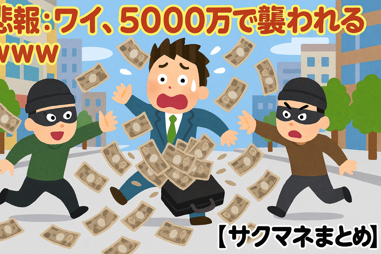 なんと5000万円を現金で持ち歩いてた猛者が、2人組に襲われるっていう事件が発生したらしいぜ…💸